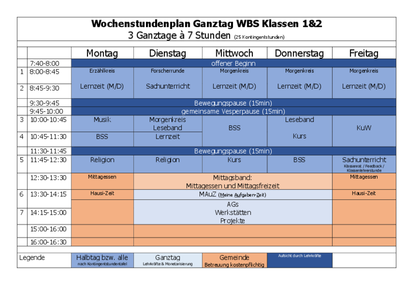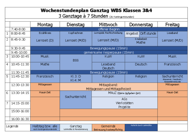 exemplarischer Stundenplan